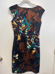 Silky, fitted, square neck dress w/ cap sleeves, back zip, lined